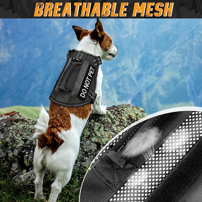 Tactical Dog Harness for XSmall Dogs, Breathable Mesh Dog Vest Tactical Puppy Harness with Handle, Reflective Military Dog Vests Harness for Outdoor Training Walking