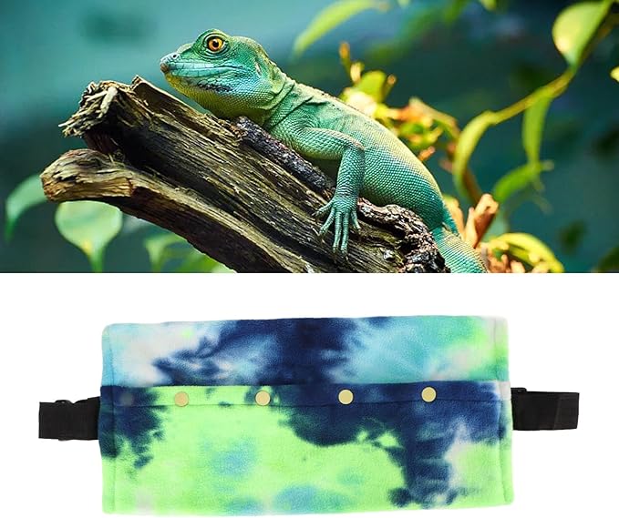 Reptile Sling Carrier, Soft Adjustable Strap Bearded Dragon Sling for Outdoor Travel Walking Rest (Blue Green)