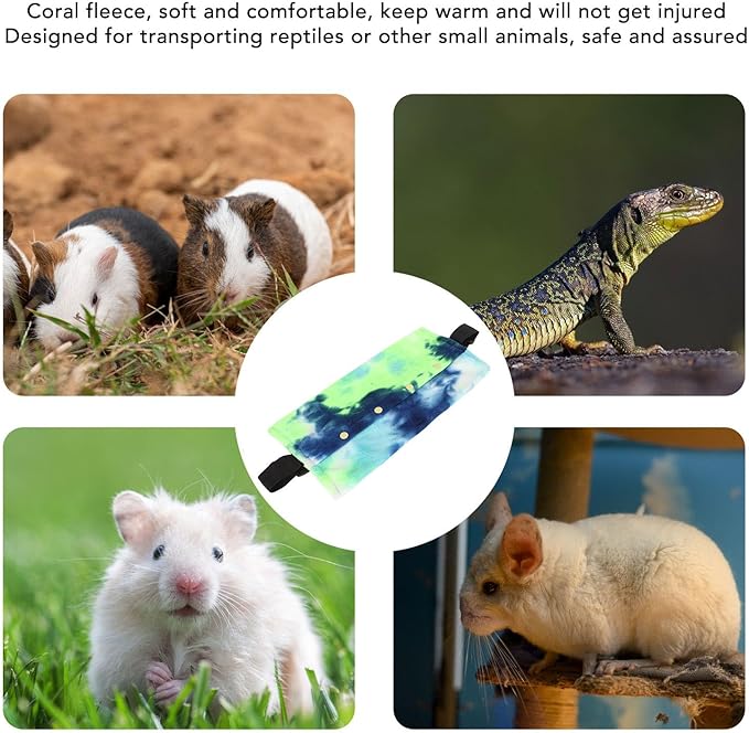 - Soft and Comfortable Material: The reptile sling carrier is made of soft coral fleece, providing a cozy and comfortable environment for your pet, keep warm and will not get injured.