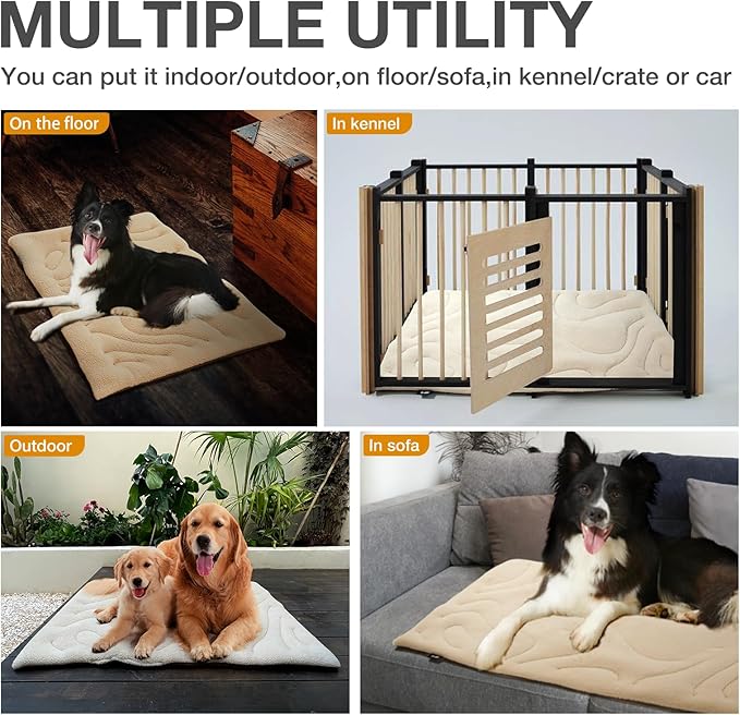 Dog Crate Pad,Machine Washable&Waterproof Dog Bed Mat,Reversible Dog Sleeping Bed,Kennel Bed for Medium/Large Dog,Cage Cushion,Beige