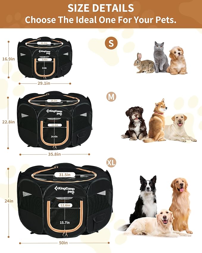 - SPACIOUS PLACE FOR PETS: Designed with different pet’s safety in mind, our fully enclosed pet playpen with bottom and cover offers five size options-S/M/L/XL/XXL to perfectly fit cats, puppy, dogs and other pets' needs. The secure shell prevents escapes and keeps your pet away from dangers, while dual roll-up doors and built-in bowl straps create a cozy, free-moving space for pets to eat, play, and rest with ease.