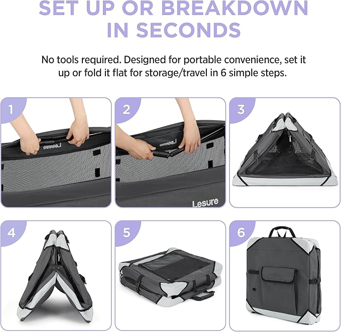 - Foldable and Space-Saving Design: This soft dog crates for large dogs provides a safe, comfortable dwelling for your pet and can be folded down in seconds to save space when traveling or when not in use. This soft-sided dog crate is quick and easy to set up with no tools required.