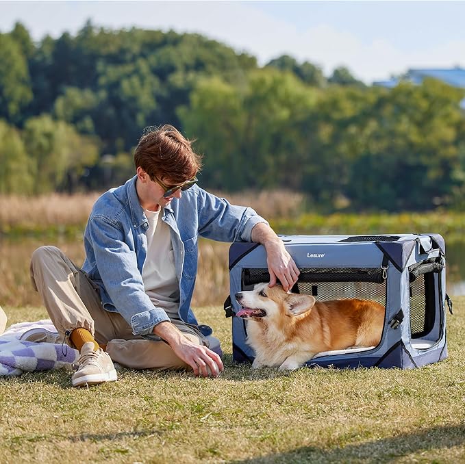 Lesure Collapsible Dog Crate - Portable Travel Kennel for Small Dog, 4-Door Pet Crate with Durable Mesh Windows, Indoor & Outdoor, Blue
