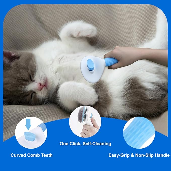 - 🐾 [Full Set of Dog/Cat Brushes] This comprehensive set of grooming brushes covers all your pet's daily care needs. A must-have for every pet family, especially when welcoming a new puppy. Designed with delightful blue sky and pink cherry styles, it also makes for a fantastic gift choice. Surprise your Fur Friends with the care they deserve!