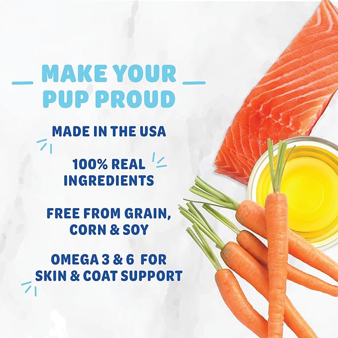 - Whole Ingredients: These yummy treats are made with real carrots and salmon oil. Free from grain, corn, and soy while still loaded with wholesome ingredients. Dogs of all ages, sizes, and breeds can enjoy!