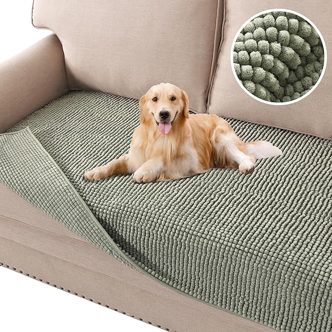 H.VERSAILTEX Plush Chenille Dog Bed Cover Thick Soft Sofa Cover for 3 Cushion Couch Anti Slip Couch Cover Furniture Protector for Dog, Pet, Cat (35" x 82", Sage)