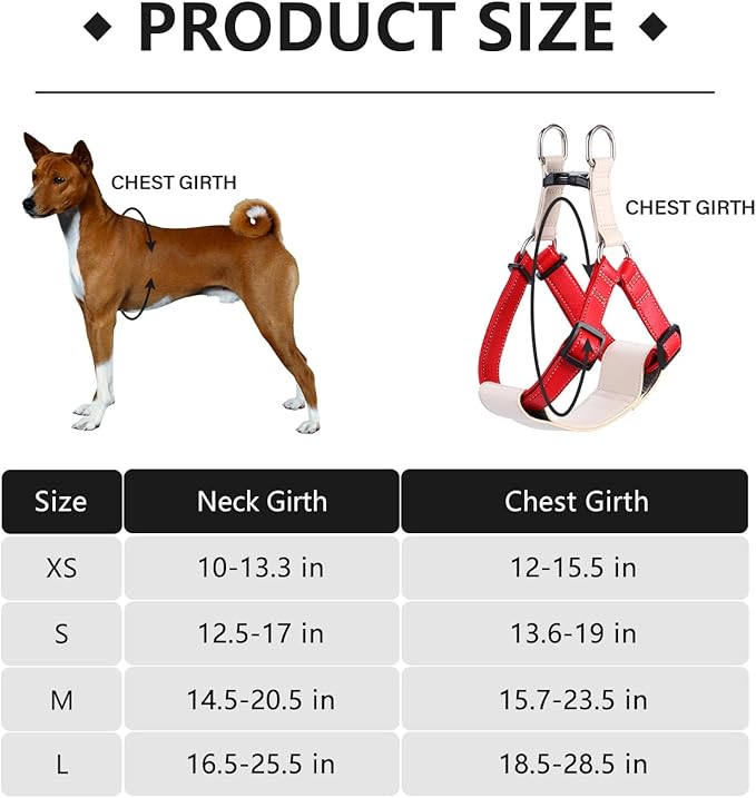 - [Proper Fit] To ensure a comfortable and secure fit, measure your dog’s chest girth and choose the appropriate size from the options: XS, S, M, or L. Always supervise your dog while it wears the harness.
