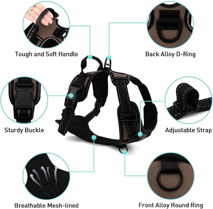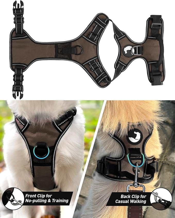 Joytale No Pull Dog Harness for Extra Large Dogs, Reflective Pet Vest with Front Clip, Adjustable Soft Padded Harnesses with Easy Control Handle for Training and Walking, Brown, XL