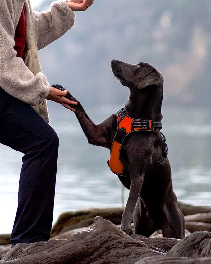 Joytale No Pull Dog Harness Medium Sized Dog, Reflective Pet Vest with Front Clip, Adjustable Soft Padded Harnesses with Easy Control Handle for Training and Walking, Orange, M