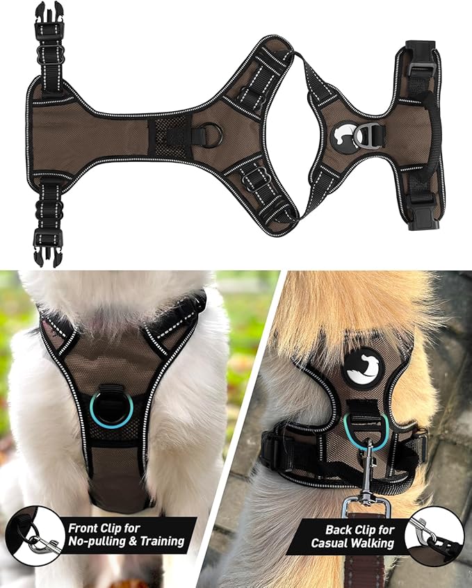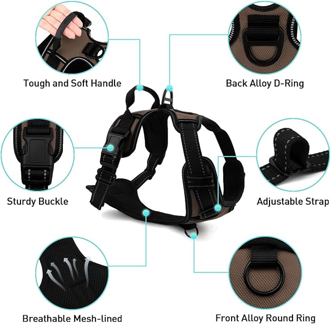 Joytale No Pull Dog Harness for Large Dogs, Reflective Pet Vest with Front Clip, Adjustable Soft Padded Harnesses with Easy Control Handle for Training and Walking, Brown, L