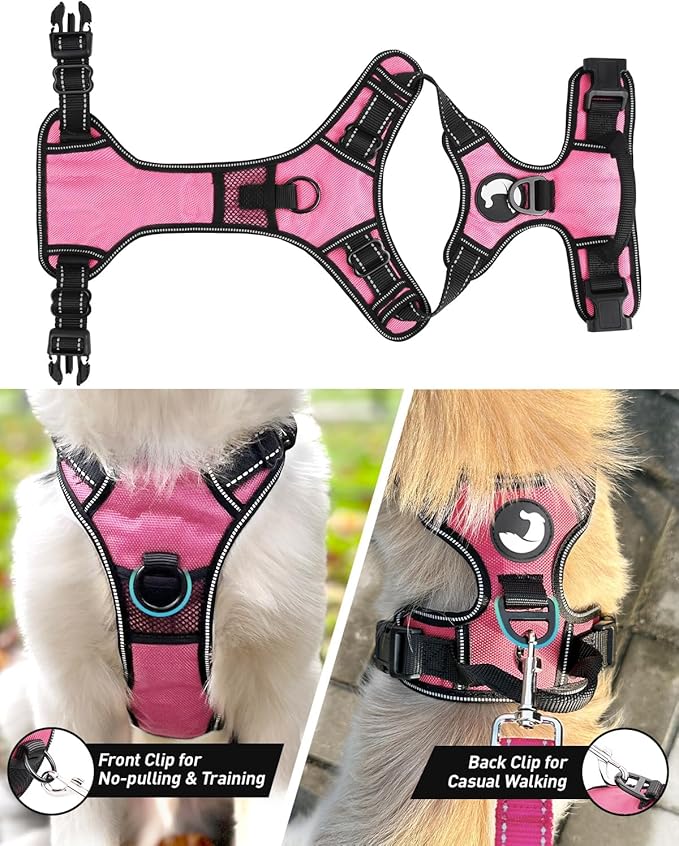 Joytale No Pull Dog Harness for Extra Large Dogs, Reflective Pet Vest with Front Clip, Adjustable Soft Padded Harnesses with Easy Control Handle for Training and Walking, Pink, XL