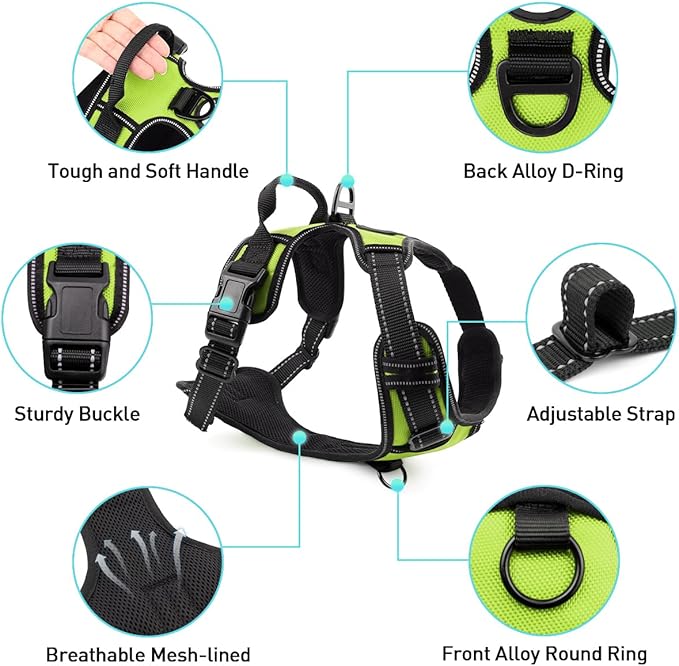 Joytale No Pull Dog Harness Medium Sized Dog, Reflective Pet Vest with Front Clip, Adjustable Soft Padded Harnesses with Easy Control Handle for Training and Walking, Green, M