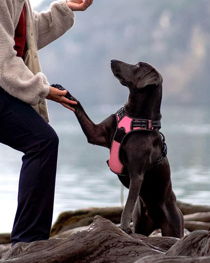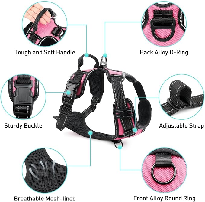 Joytale No Pull Dog Harness for Large Dogs, Reflective Pet Vest with Front Clip, Adjustable Soft Padded Harnesses with Easy Control Handle for Training and Walking, Pink, L