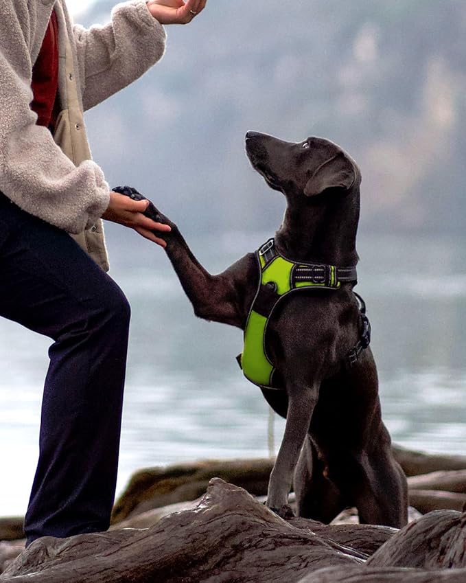 Joytale No Pull Dog Harness for Large Dogs, Reflective Pet Vest with Front Clip, Adjustable Soft Padded Harnesses with Easy Control Handle for Training and Walking, Green, L