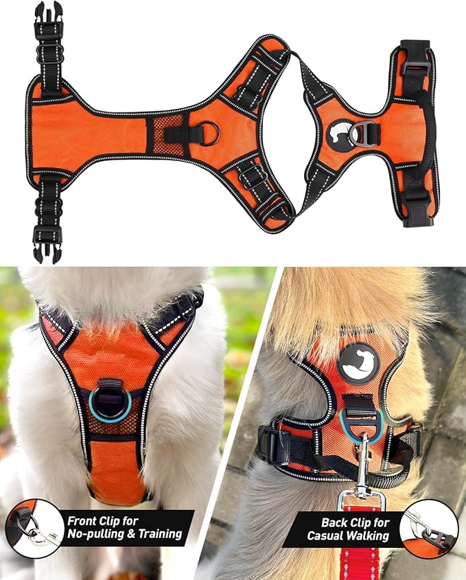 Joytale No Pull Dog Harness for Large Dogs, Reflective Pet Vest with Front Clip, Adjustable Soft Padded Harnesses with Easy Control Handle for Training and Walking, Orange, L