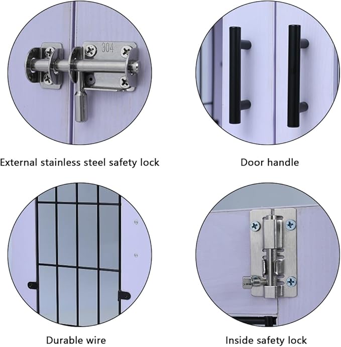 - The dog crate is very easy to assemble and all hardware and instructions are included. dog crate can hold up to 85 pounds of internal weight