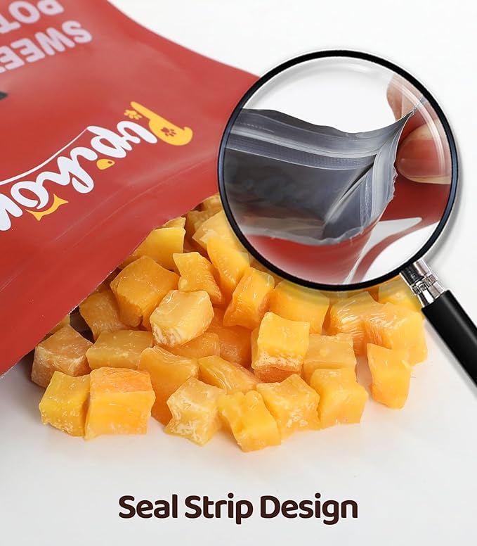- 【Great for Teeth Health】The firm texture of sweet potato cubes can help promote teeth health by gently scraping away plaque and tartar buildup from your dog's teeth as they chew. Regular chewing can contribute to fresher breath and healthier gums