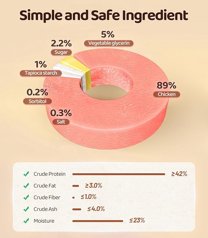 - 【Easy to Digest】The perfect combination of taste and nutrition! Made with premium-quality chicken, these small pieces are packed with protein, low in fat, and easy to digest, making them an excellent choice for your pet's snacking needs. Our Chicken Slices are easy to digest, making them gentle on your pet's stomach for worry-free snacking