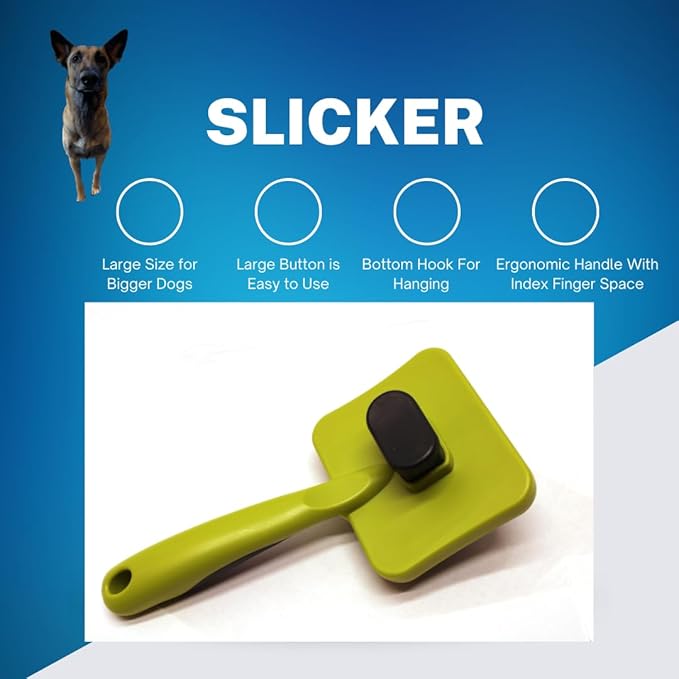 - Two-piece kit of heavy duty high quality professional non shedding dog grooming brushes.