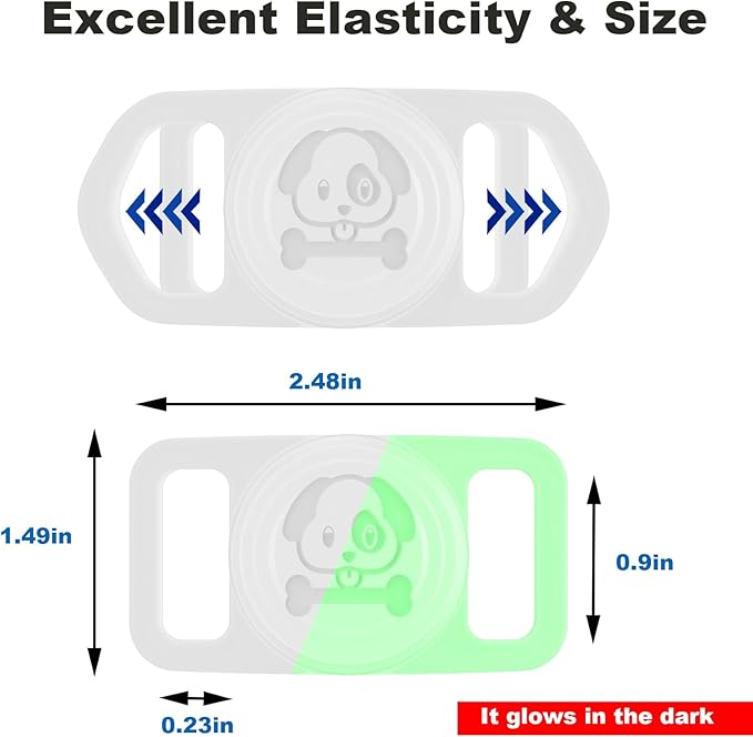 - 【Waterproof design】This Air Tag dog collar waterproof housing is a silicone cap sealed design that is waterproof and impact resistant.It glows in the dark.