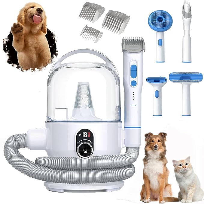 Pet Grooming Brush Kit 2L High Capacity Vacuum 99% Pet Hair Not Easy to Block, Low Noise Removable for Cats and Dogs Grooming Brush Kit, One-Click Clean and 16 Levels of Suction Adjustment (White)