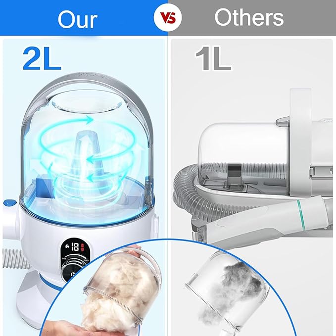 - 16 LEVEL SUCTION ADJUSTMENT: Pet grooming machine has 13.4Kpa supersuction, more than most products, 16 adjustment gears, can collect 99% of pet hair into vacuum containers, suitable for various environments to meet different needs.