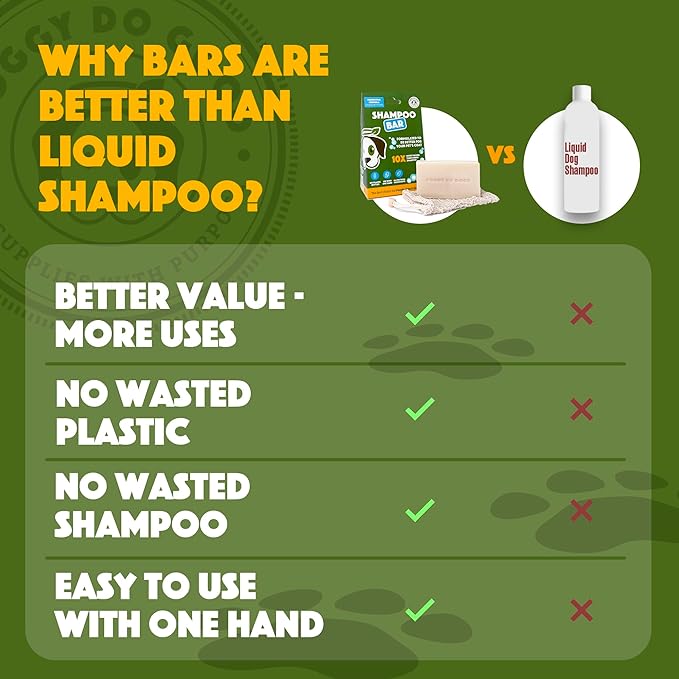 - Save money and reduce plastic: Unlike regular dog shampoos, our shampoo bar is a sustainable and planet-friendly choice for conscientious pet owners and offers the equivalent of 30 fl oz of shampoo