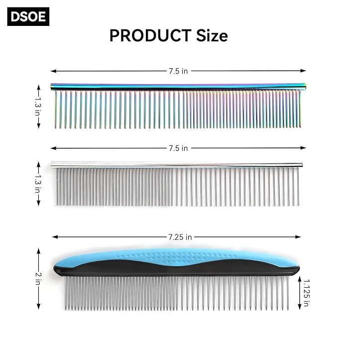 - Dual-Density Design: The combs include both wide and fine teeth. The denser part is perfect for grooming sensitive areas like the eyes, ears, and legs, while the sparser part efficiently detangles and fluffs your pet's coat. The polished, rounded tips prevent skin irritation, making grooming a breeze