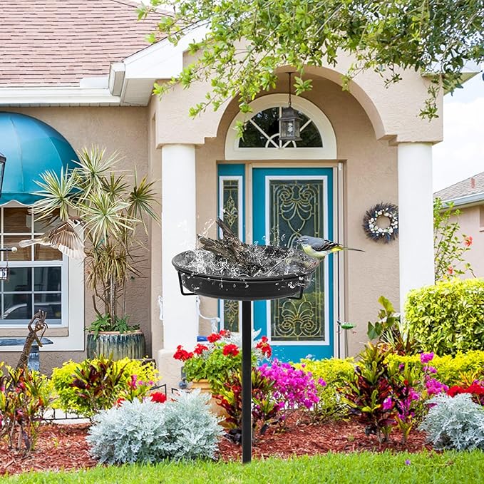 - 【Sturdy Base】Heavy duty steel stake with 4 solid prongs makes this bird bath stay in the soil of your garden upright and firmly. This birdbath is uneasy to bend, break or fracture, keeping your yard or garden full of songbirds all year long.
