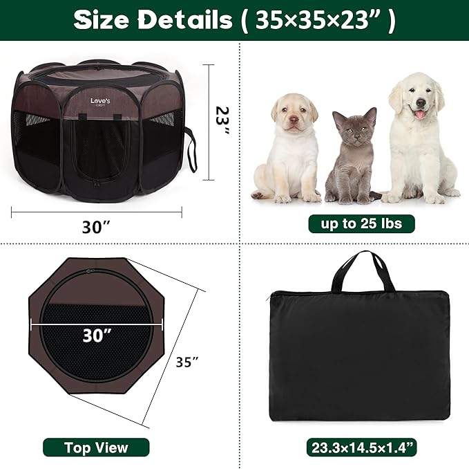 - Multiple Sizes of the Dog Playpen: Small-29x29x17 inches, suitable for small pets up to 10 lbs; Medium-36x36x23 inches,suitable for pets up to 25 lbs; Large-45x45x23 inches,suitable for pets up to 45 lbs. Please Measure your Pets before purchase. All dimensions are measured manually, please allow deviation of 1 inch.
