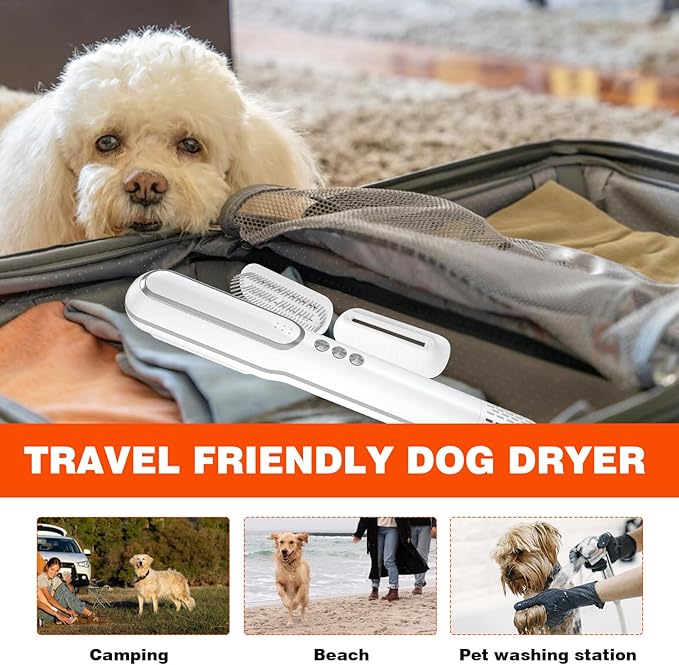 - 【Light Weight Considerate Design】The Portable Handheld Pet Grooming Hair Dryer is only 0.88 pounds, suitable for full body care of small and medium dogs, and also suitable for daily spot care of all dog breeds. Such as feet, tails, etc., it is small, does not take up a lot of space, and can be used at any time, A removable filter at the bottom of the machine can better prevent dust.