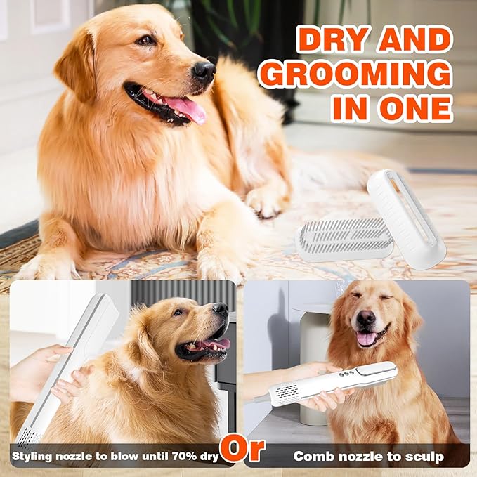 - 【Powerful Blow Force & Low Noise】The pet hair dryer with high-speed brushless motor with a speed of up to 106,000 rpm, while ensuring safety, it can minimize noise and avoid strong noise that makes pets scared and uncomfortable.