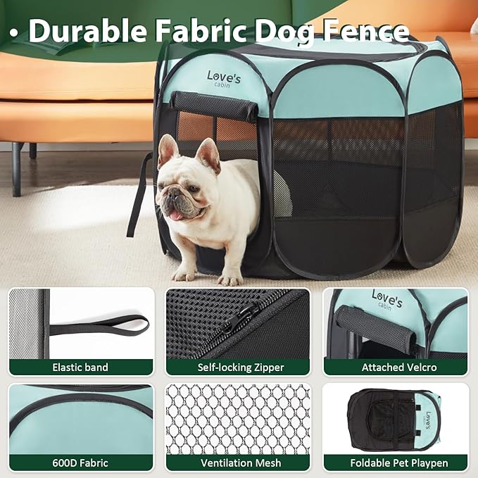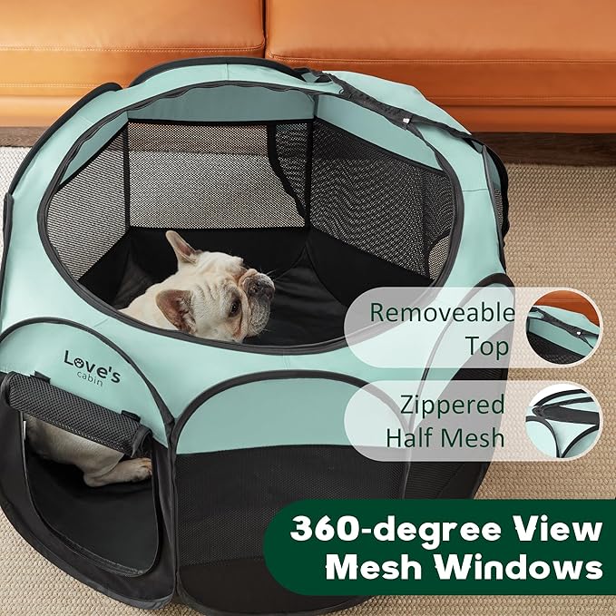 Love's Cabin Pet Puppy Playpen, Medium Dog Tent Crate, Portable Foldable Pop Up Dog Kennel with Carrying Case, Removable Zipper Top, Green