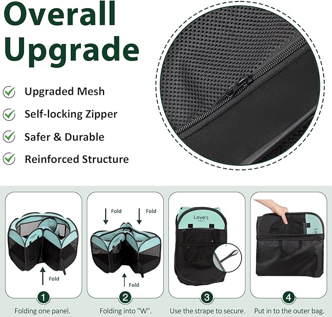 - No Assembly Required and Easy to Store: The Portable Pet Play Pen comes along with a convenient carrying case that can easily store your playpen. It takes seconds to open the dog playpen from folded storage bag, no assembly required. And it's also easy to fold back flat when not in use. Our lightweight portable pet playpen can be used indoors, outdoors, traveling, camping, etc.