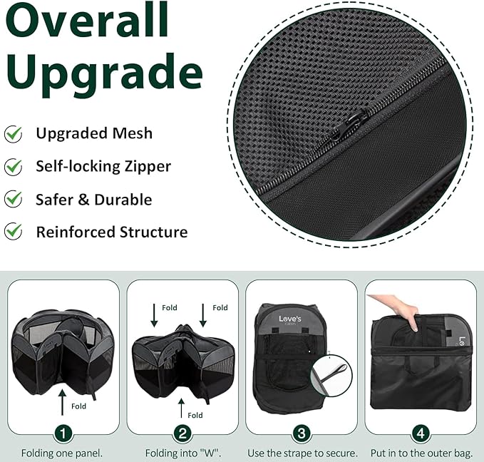 - No Assembly Required and Easy to Store: The Portable Pet Play Pen comes along with a convenient carrying case that can easily store your playpen. It takes seconds to open the dog playpen from folded storage bag, no assembly required. And it's also easy to fold back flat when not in use. Our lightweight portable pet playpen can be used indoors, outdoors, traveling, camping, etc.