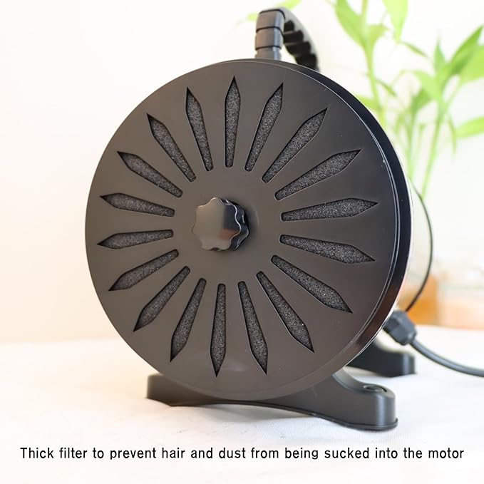 - Thick filter to prevent hair and dust from being sucked into the motor: The filter is easy to remove and clean, just unscrew the knob and remove the cover. Recommended to clean the pad after each use thus filter doesn’t get clogged too fast then to prolong the motor life.