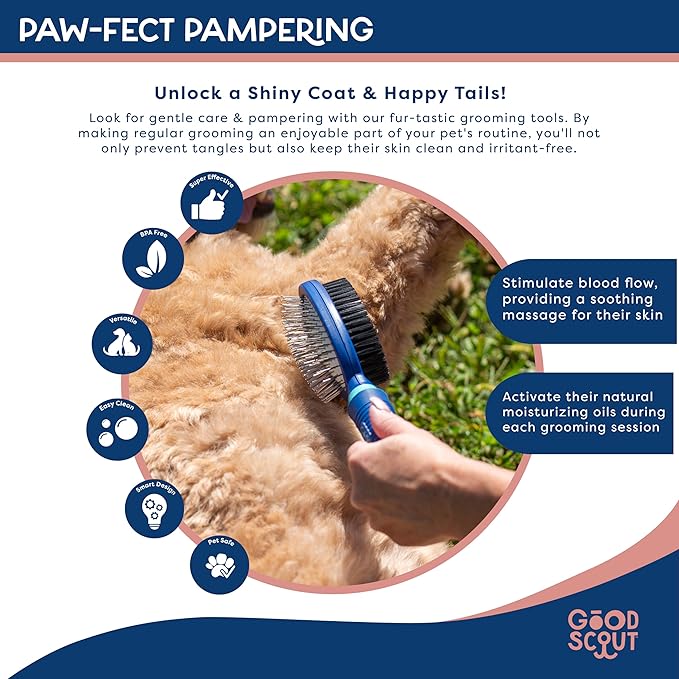 Good Scout 2-in-1 Pin & Bristle Deshedding Tool for Dogs & Cats, Gentle & Effective Dematting Brush for Long & Short Haired Pets, Pet Grooming Tool for Shedding, Tangles, and Knots