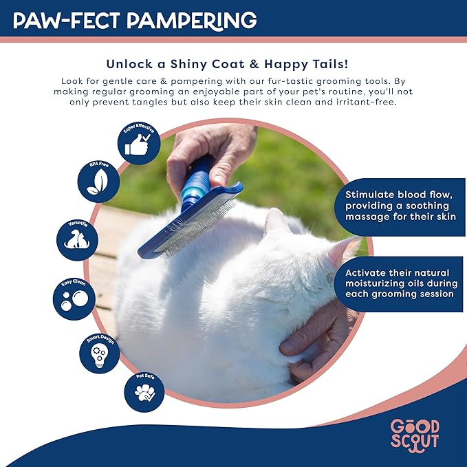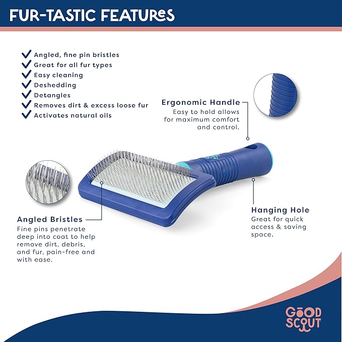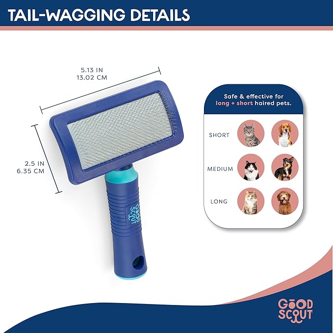 Good Scout Slicker Brush, Best Deshedding Tool for Dogs & Cats, Gentle, Safe & Effective Pet Grooming Tool for Long & Short Haired Animals