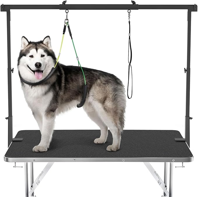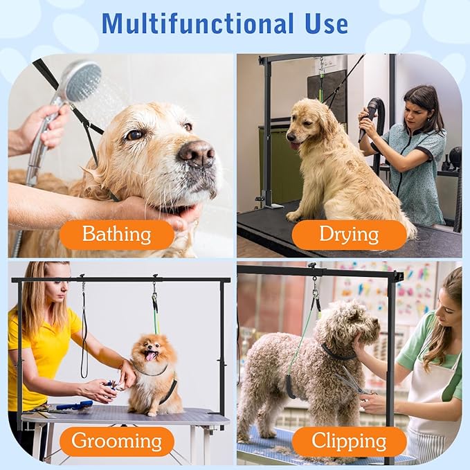 - Convenient Grooming: Equipped with 2 fixed ropes and 1 traction rope, secure the dog's head and buttocks while bathing, drying, brushing, clipping, or combing fur, which prevents sitting or lying down, and the sponge protector on the ropes makes you don't need to worry about hurting the dog.