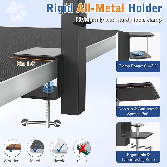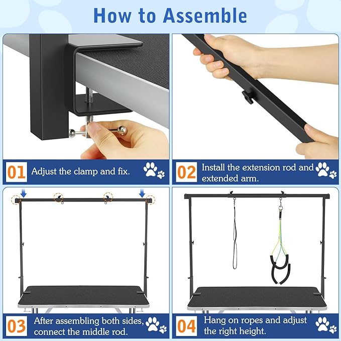 - Simple to Use: The pet grooming stand holder is very easy to assemble, directly installed and used without other aids, non-professional groomers can also easily groom their dogs at home. (Note: Not include table.)