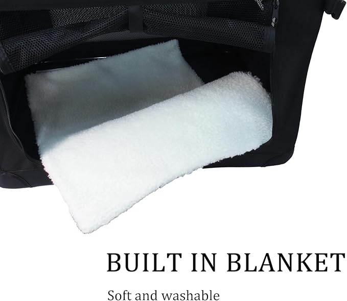 - Ventilation Design: Mesh panels on all sides for superior airflow and visibility, promoting air circulation and reducing your pet's stress while traveling