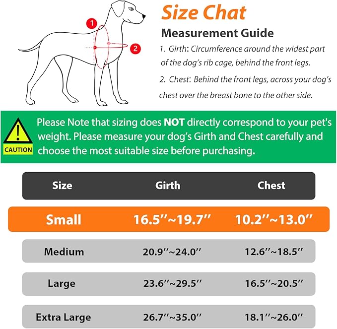 - Small Dog Harness: For Small Size Dog's [Girth:16.5''-19.7''], [Chest:10.2''-13.0'']. Please Note that sizing does NOT directly correspond to your pet's weight. Please measure your dog's girth carefully and choose the most suitable size before purchase. This dog harness for medium dogs no pull is perfect gift for Thanksgiving, Christmas, New Year.