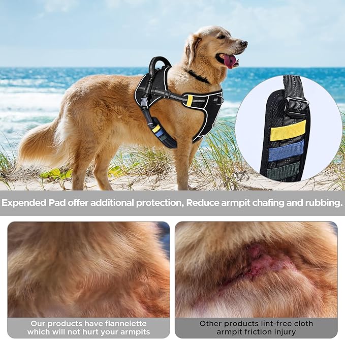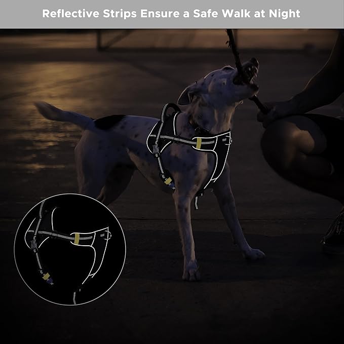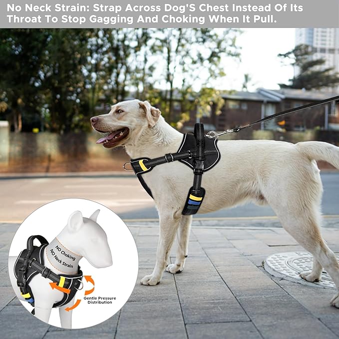 - 【No-Choke and Comfortable Fit】: Your dog's safety and well-being are our top priorities. Crafted with a no-choke design, our harness ensures gentle pressure distribution, eliminating the risk of choking or neck strain. The padded interior and breathable mesh construction provide optimum comfort, making walks a delight for your four-legged friend.