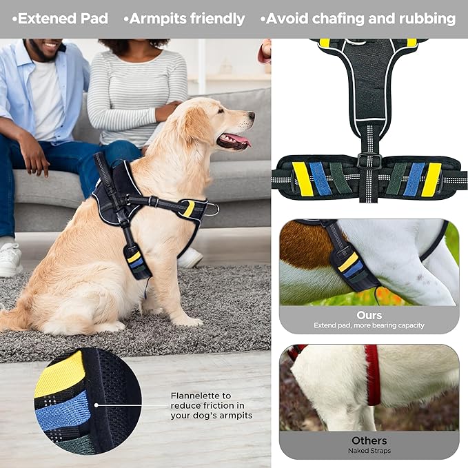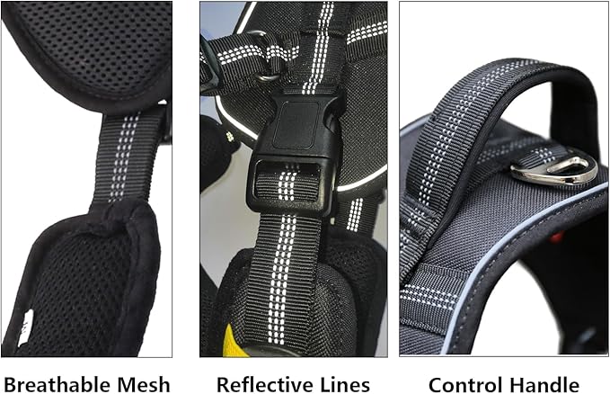 - 【No-Choke and Comfortable Fit】: Your dog's safety and well-being are our top priorities. Crafted with a no-choke design, our harness ensures gentle pressure distribution, eliminating the risk of choking or neck strain. The padded interior and breathable mesh construction provide optimum comfort, making walks a delight for your four-legged friend.