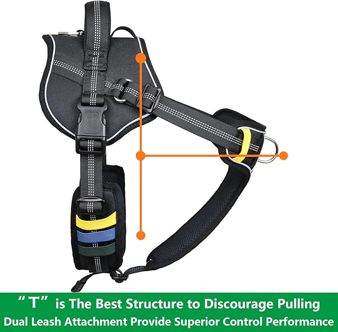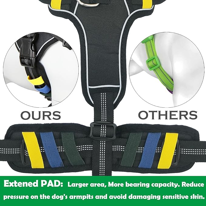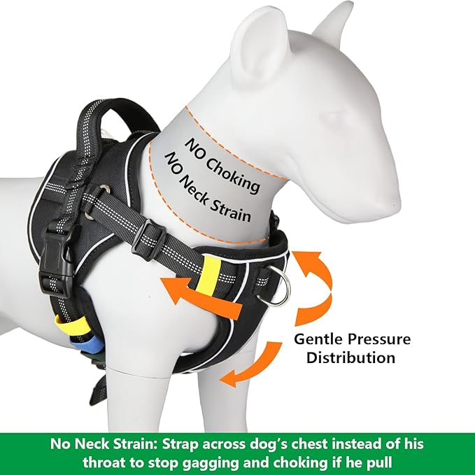 - 【No-Choke and Comfortable Fit】: Your dog's safety and well-being are our top priorities. Crafted with a no-choke design, our harness ensures gentle pressure distribution, eliminating the risk of choking or neck strain. The padded interior and breathable mesh construction provide optimum comfort, making walks a delight for your four-legged friend.