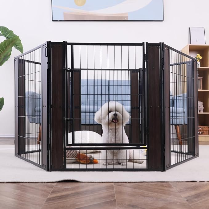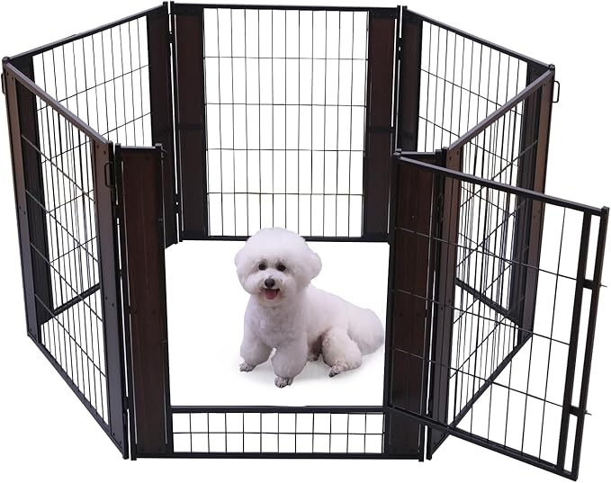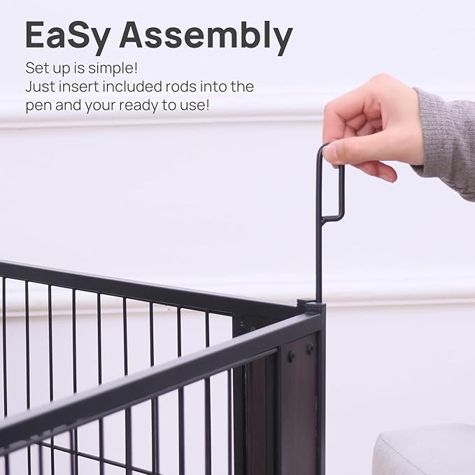 - 【Robust and Aesthetic Structure】Constructed from sturdy metal components, our puppy playpen is built to last, resisting damage from small pets while enhancing its longevity. The design is not only strong but also aesthetically pleasing, blending seamlessly with your home decor. Rounded edges safeguard your pets against scratches, ensuring their safety within the enclosure.