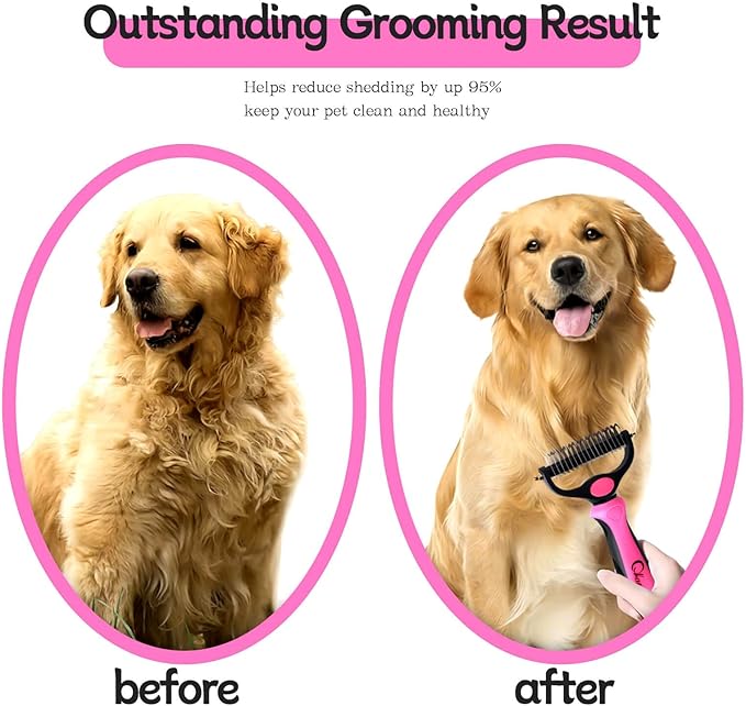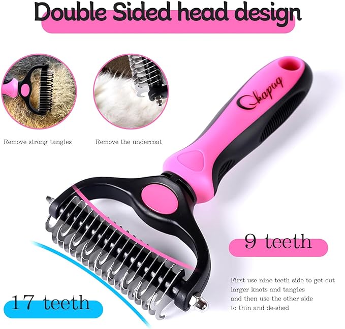 Pet Grooming Brush and Metal Comb Double Sided Long Hair Pet Undercoat Cleaner Brush for Dogs and Cats Removes mats and lint Effectively removes carpet shedding or flyaway hair.(Pink)…