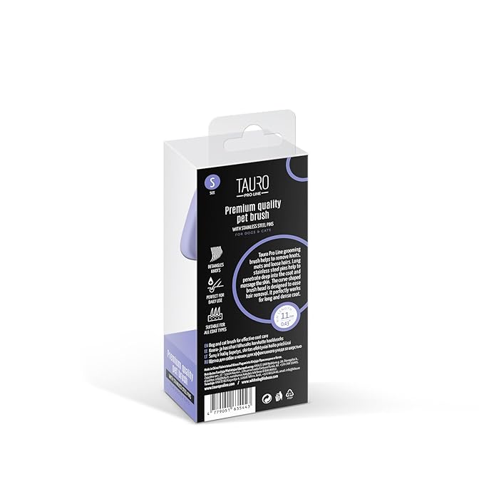 - COAT CARE - The Tauro Proline grooming brush ensures easy grooming for both dogs and cats, thanks to its soft and flexible cushion. The stainless steel teeth glide gently through both short and long hair coats, ensuring a pain-free grooming session every time.