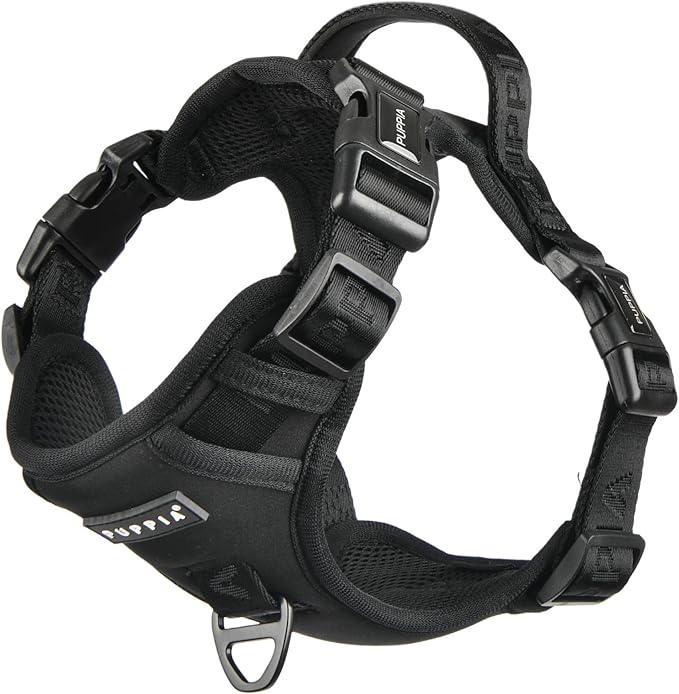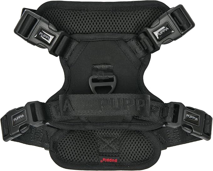 Puppia Jarek Dog Harness H Comfortable Sturdy Handle Adjustable Neck and Chest for Small and Medium Dogs - Black - L