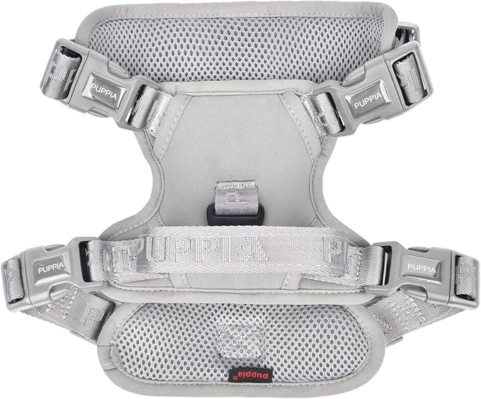 Puppia Jarek Dog Harness H Comfortable Sturdy Handle Adjustable Neck and Chest for Small and Medium Dogs - Grey - L